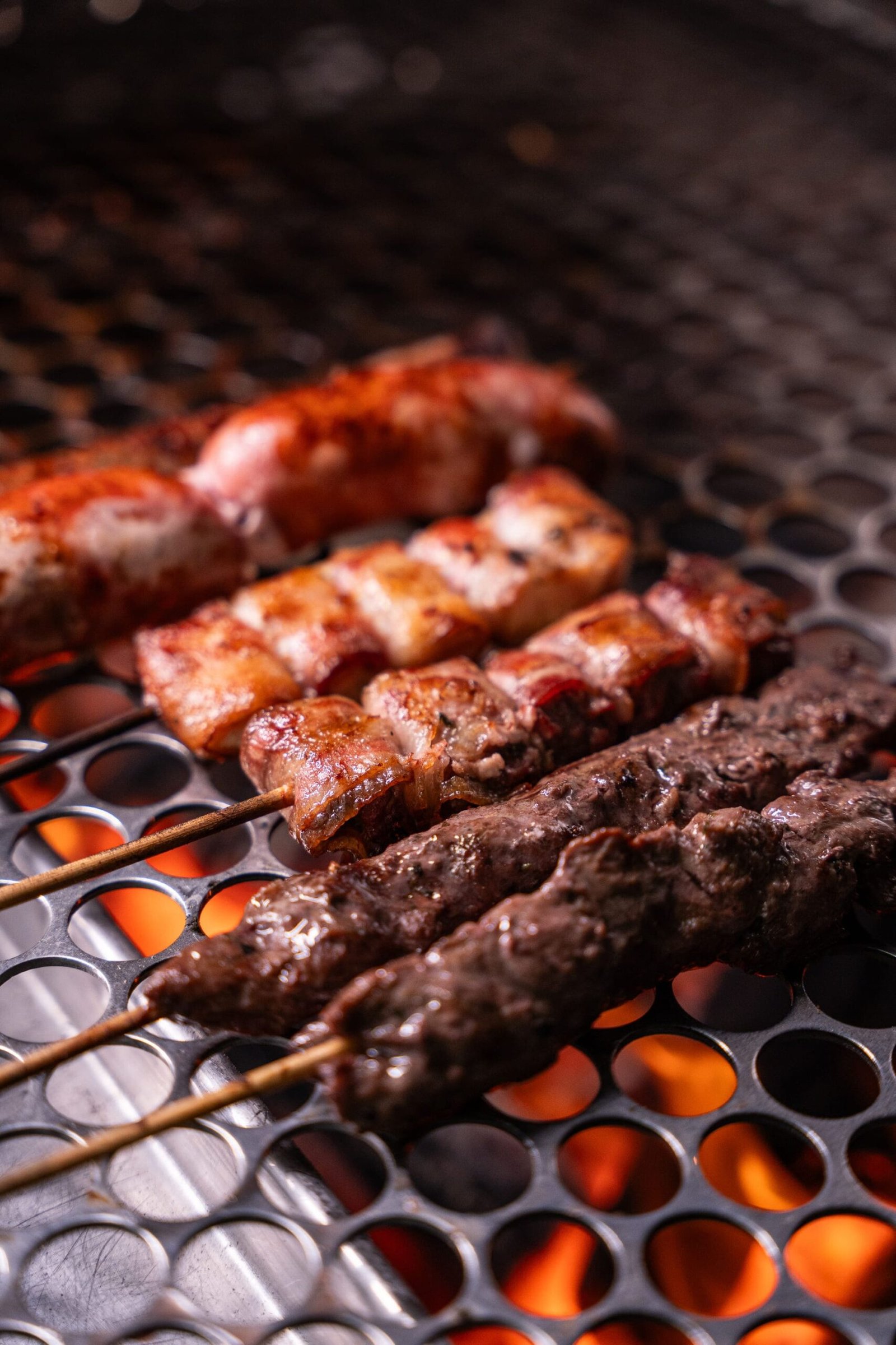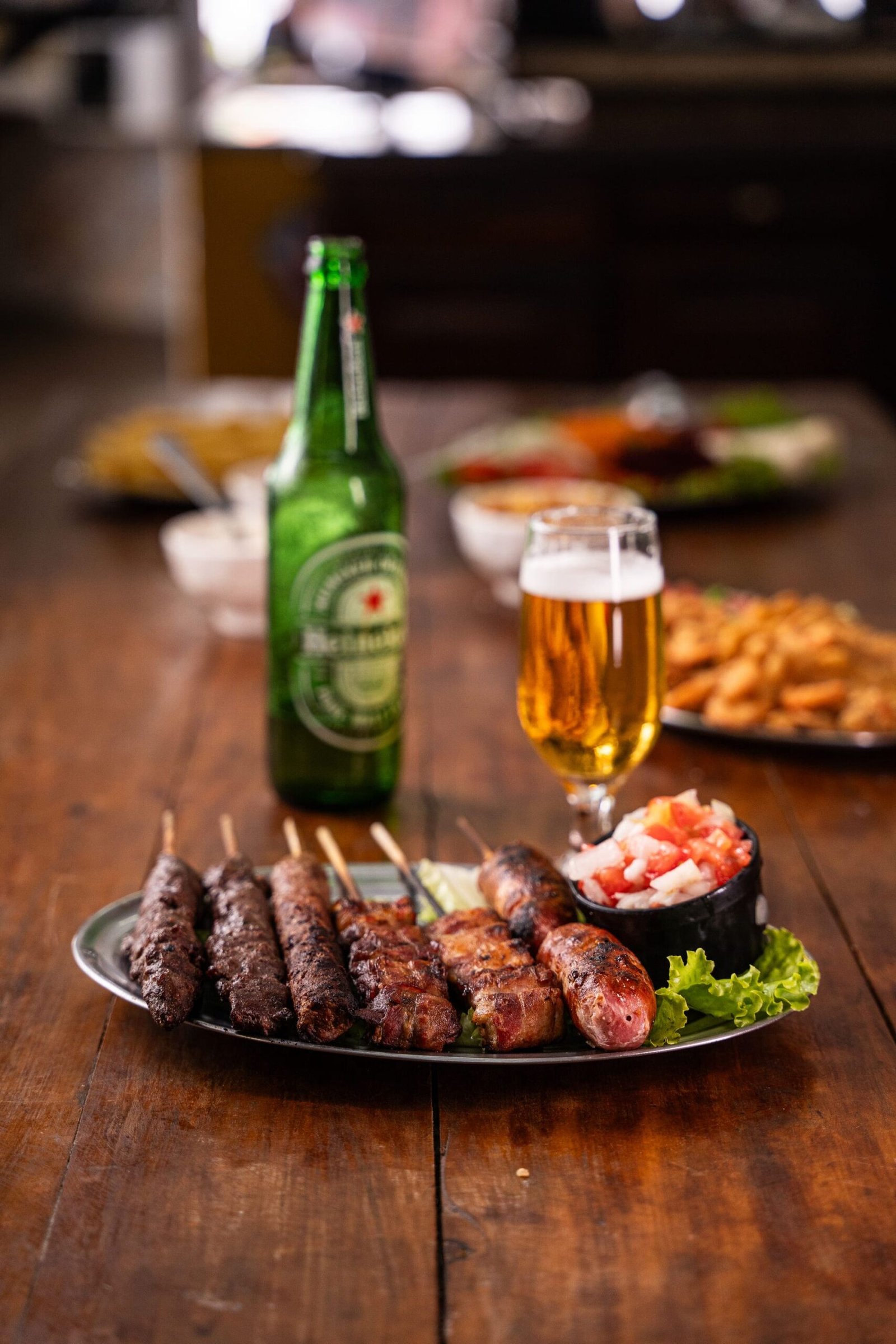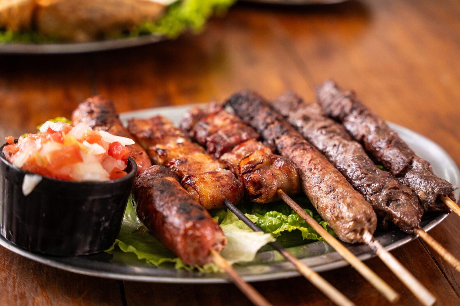 Todos os espetos acompanham vinagrete. A partir de 08 espetos, acompanham também arroz, feijão carioca ou farofa de feijão. Venha experimentar!